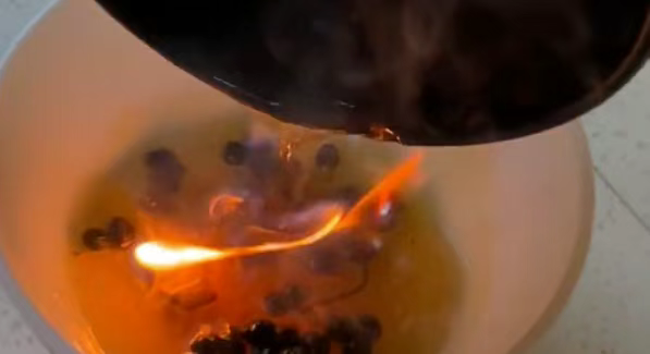 △女子在家做花椒油时,将热油倒入陶瓷碗中,碗无法承受瞬间的高温与冲击,当场破裂。